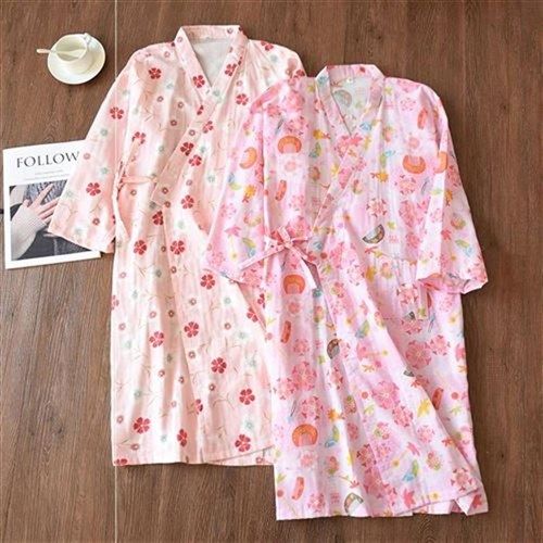 款日式和服女士浴袍睡裙长袖睡袍全I棉纱布夏秋季款可爱汗蒸热门设计联盟服务商